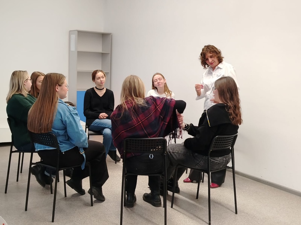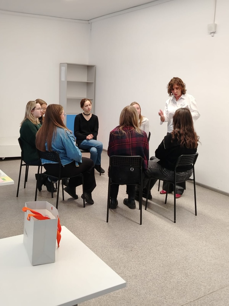Педагог-психолог Феоктистова С. В. в формате мастер-класса продемонстрировала интерактивные техники и эффективные способы вовлечения родителей воспитанников во взаимодействие. Студенты 4 курса, 621 и 622 группы приняли в нем активное участие. Поделились педагоги своим опытом реализации «Программы просвещения родителей (законных представителей) детей дошкольного возраста, посещающих дошкольные образовательные организации», а также секретами построения конструктивного взаимодействия с семьями.
