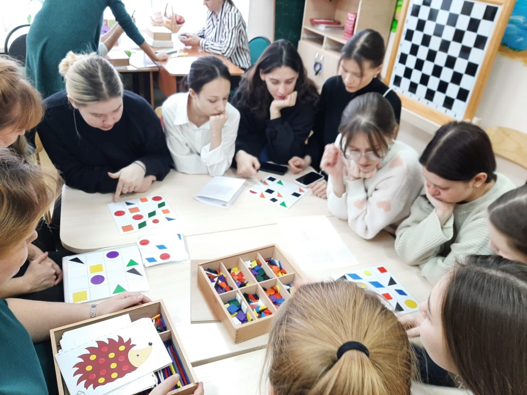 11 ноября студенты гр. 631 ФДиНО приняли участие в семинаре-практикуме «Современные технологии психолого-педагогического сопровождения детей с ОВЗ в условиях ДОО», который состоялся на базе МАДОУ № 44 г. Томска при поддержке Научно-методического центра сопровождения педагогических работников Парка инновационных образовательных практик ИРПО ТГПУ. Стоит отметить особую актуальность просвещения студентов в этом вопросе, т.к. в детских садах активно реализуется инклюзивная практика, а количество детей с ОВЗ, к сожалению, с каждым годом растет. Посредством вовлечения студентов в мастер-классы, педагогами были презентованы эффективные инструменты и практики развития когнитивных способностей, сенсомоторных навыков, стимуляции речи детей с ОВЗ: авторские игры по работе с пособием «Дары Фрёбеля», нейропсихологические упражнения, мягкие пособия «Времена года», техника «Кракле» и др.
