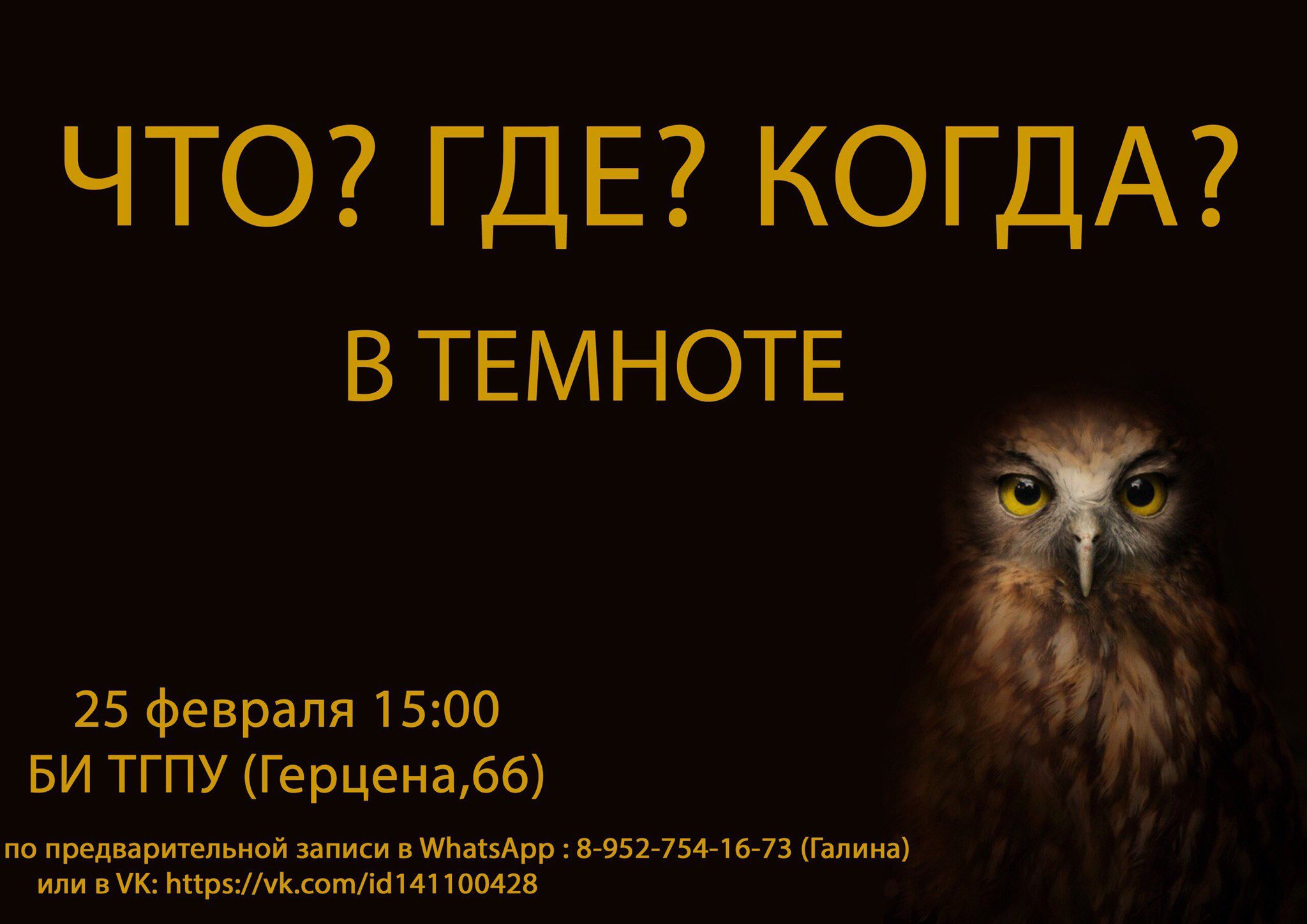 25 февраля в 15.00 студенты Томского государственного педагогического университета, резиденты бизнес-инкубатора ТГПУ, участники проекта «Blackvist» впервые проведут в стенах вуза интеллектуальную игру «Что? Где? Когда?» в темноте.