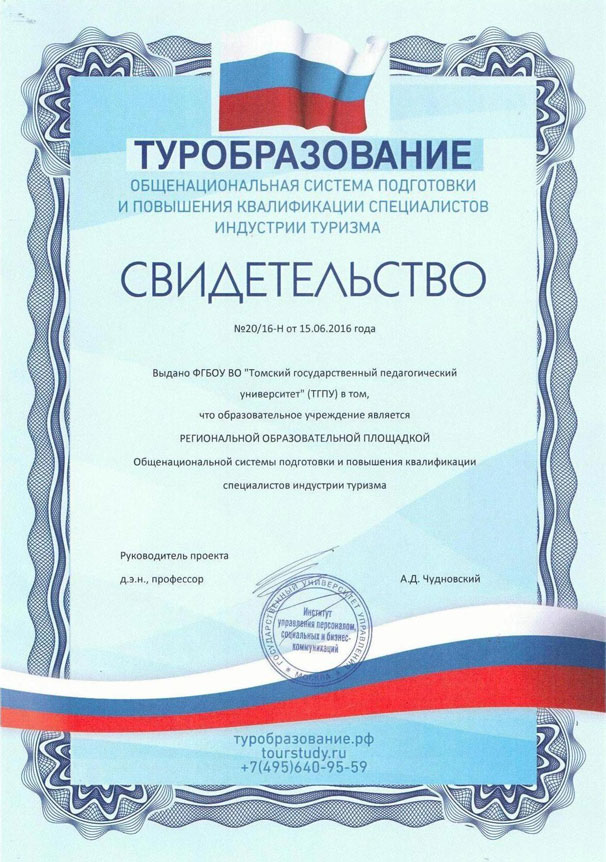 Кафедра экономической теории факультета экономики и управления (зав. кафедрой, профессор В.В. Сизов) ТГПУ, являясь Региональной образовательной площадкой общенациональной системы подготовки и повышения квалификации специалистов индустрии туризма, открывает набор на дистанционные курсы повышения квалификации для специалистов в области туристской деятельности: