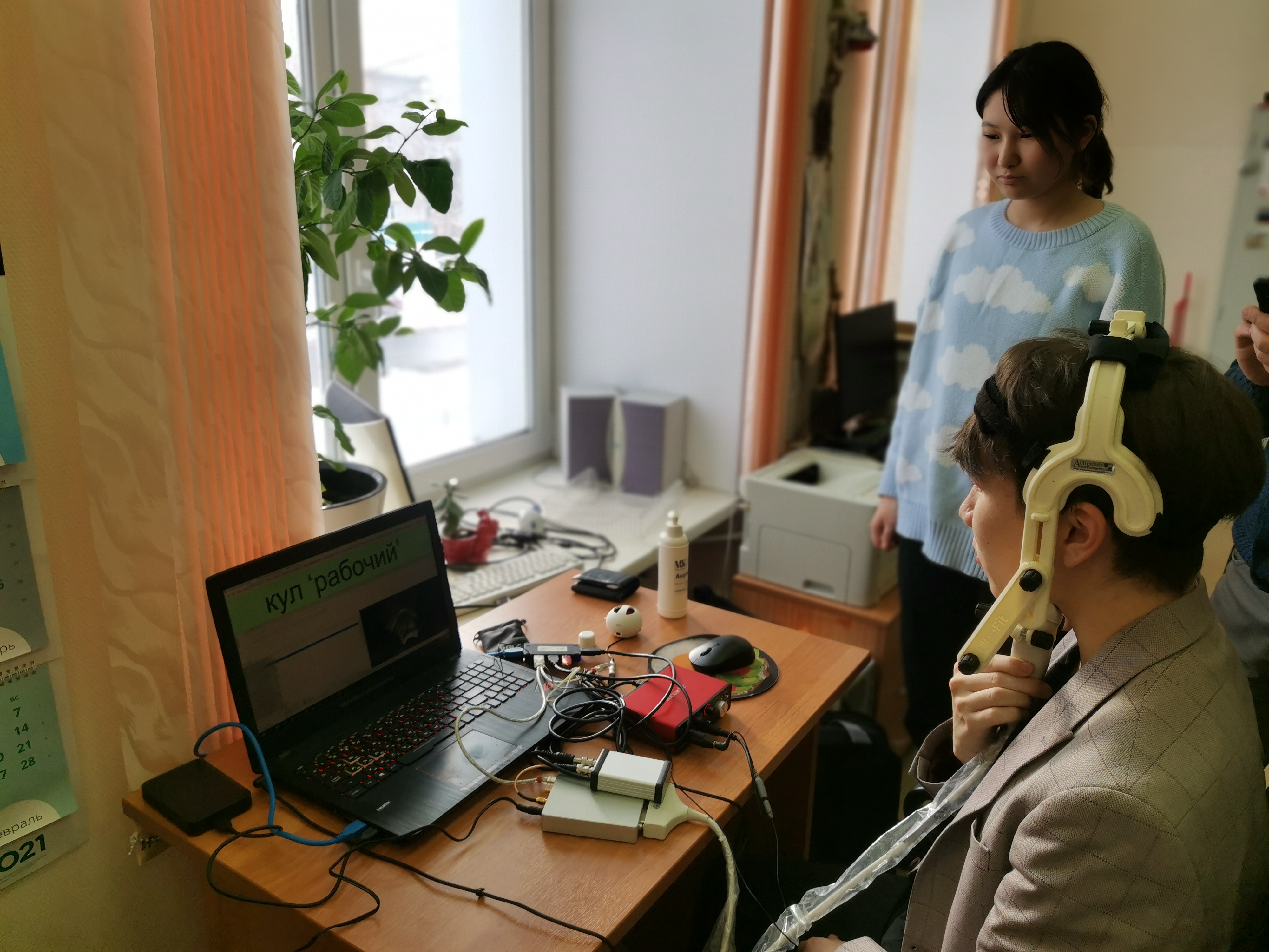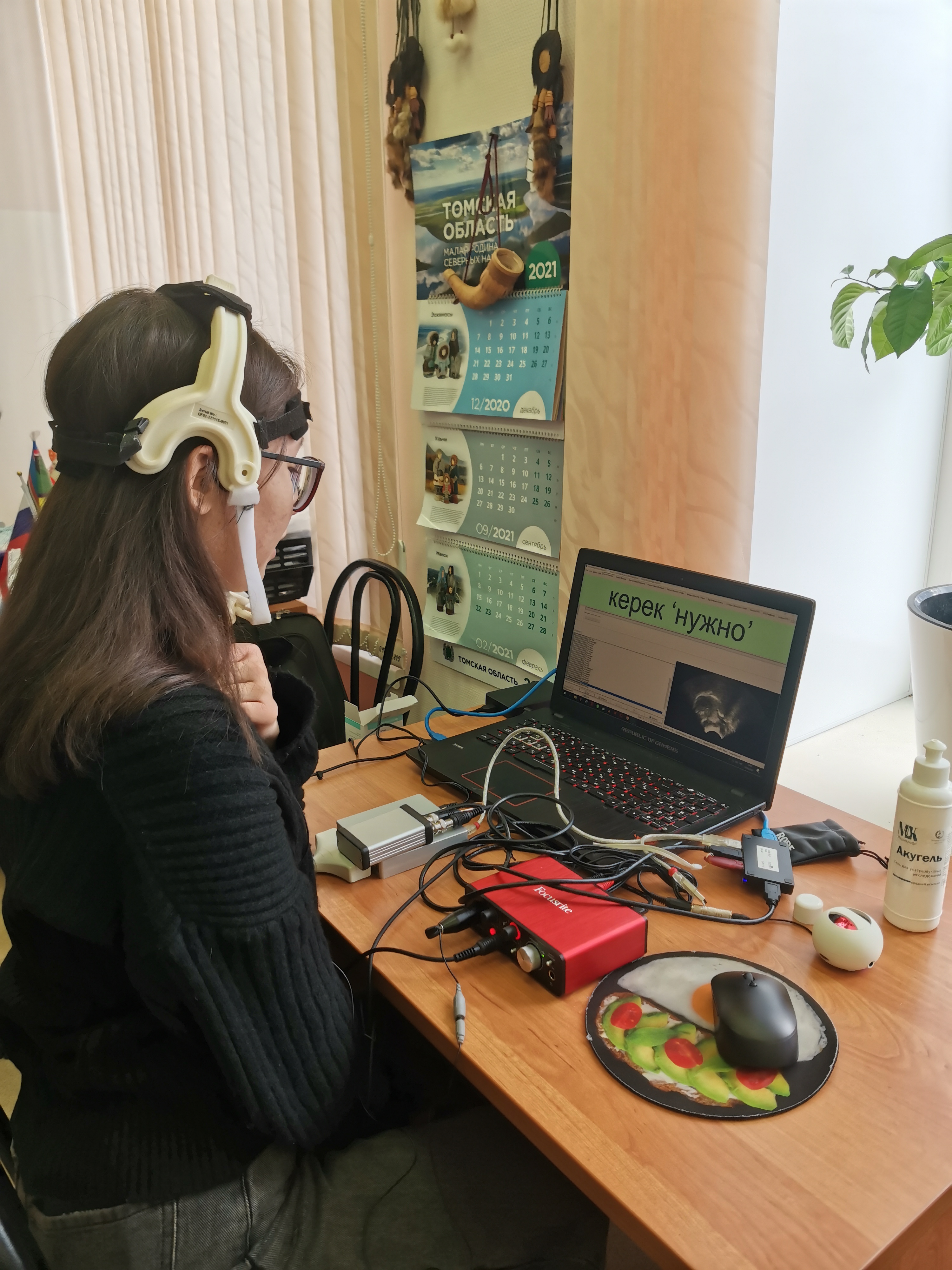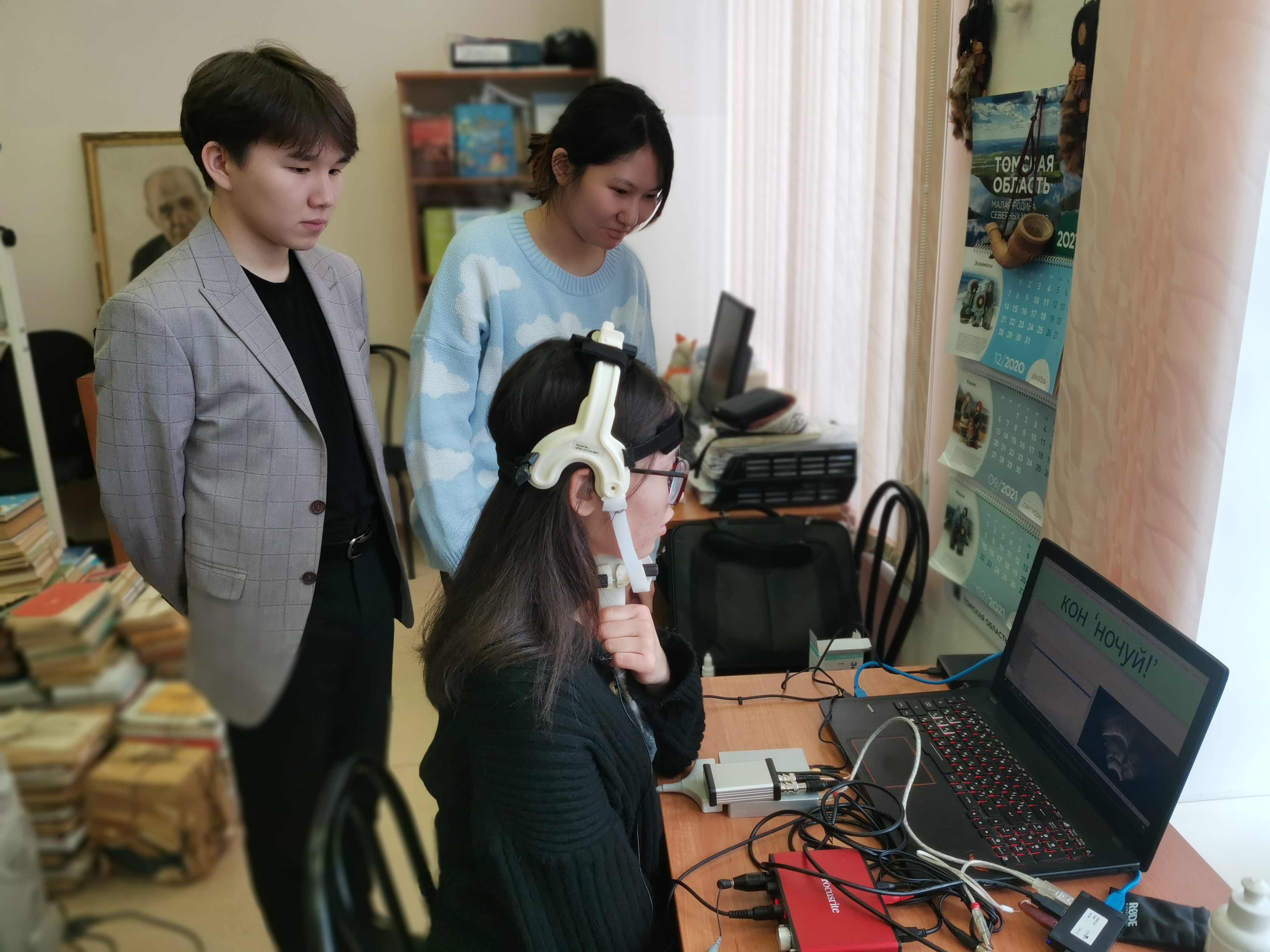 Вторым событием деятельности СНО на этой неделе стала полевая работа с языками, носителями которых являются сами студенты. Под руководством доцента кафедры английской филологии и межкультурной коммуникации ИИЯМС Дениса Михайловича Токмашева и заместителя директора ИИЯМС Валерии Михайловны Лемской обучающиеся 1 курса Камилла Зияданова (группа 224) и Алия Абдуманапова (группа 227) осуществили запись фонетических явлений родных казахского и кыргызского языков. К этой работе также присоединился носитель алтайского языка, студент 1 курса факультета исторических и политических наук ТГУ Айан Яков. В ходе записи артикуляционных настроек речи с использованием оборудования «Articulate Instruments Micro» были получены записи когнатных лексических единиц в указанных языках. В дальнейшей работе планируется осуществить сравнение полученных результатов, а также опубликовать статью в рецензируемом журнале.