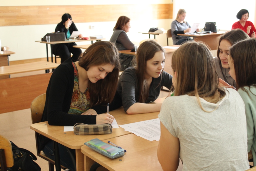 Проверяли диктанты, как обычно, студенты-филологи первого курса (группы 381 и 382). Проверкой диктантов руководили Анна Владимировна Курьянович и Иннеса Игоревна Бабенко.