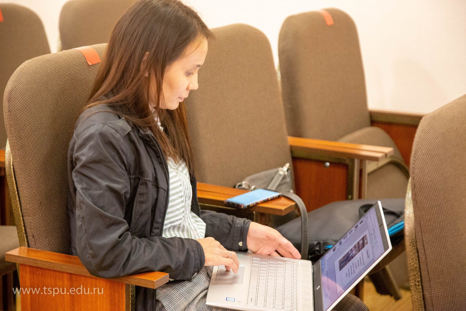 Токмашев Денис Михайлович, представляющий ТГПУ и ТГУ, поделился опытом изучения и системного описания телеутского языка. Лемская Валерия Михайловна, кандидат филологических наук, доцент кафедры перевода и переводоведения ИИЯМС ТГПУ, презентовала доклад «Ещё раз о среднечулымской фонологии»: