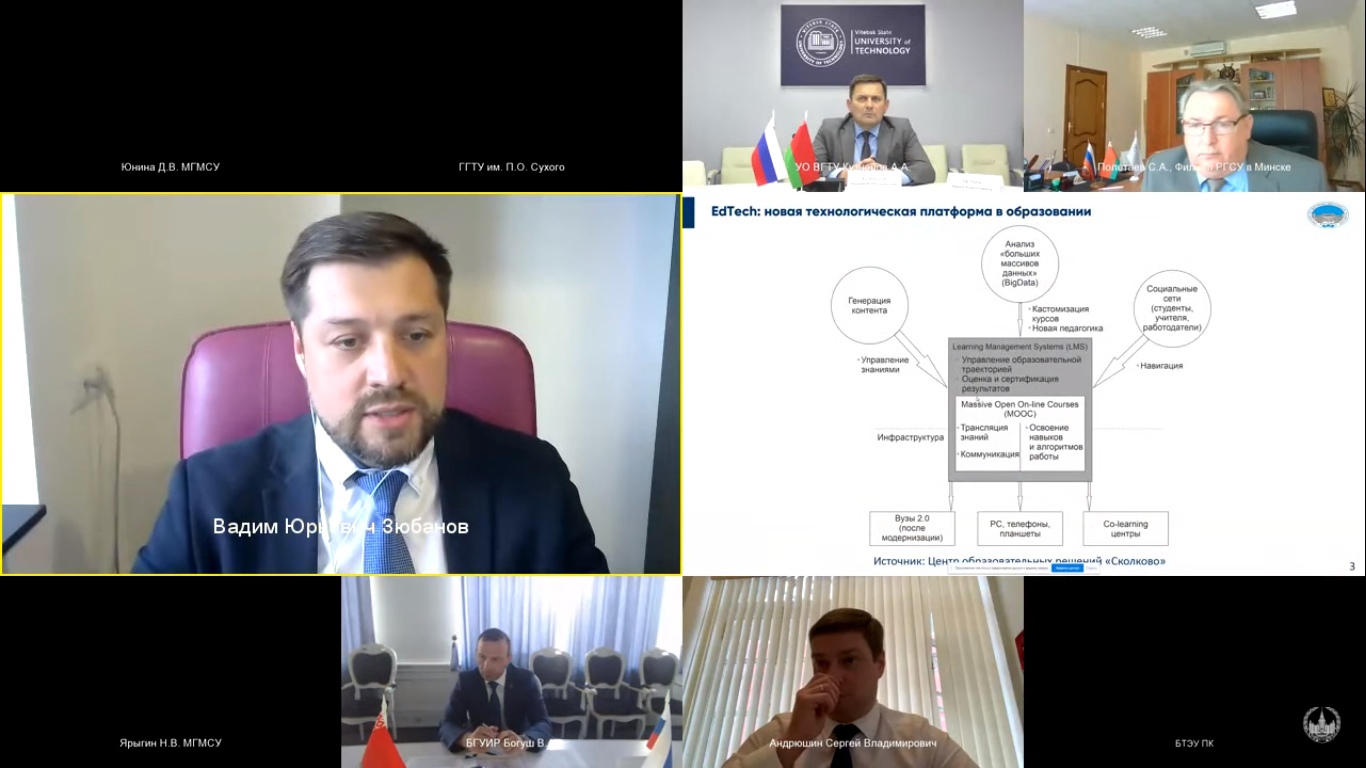 Начальник Управления международного сотрудничества ТГПУ отметил, что распространение пандемии только ускорило необратимый процесс цифровизации, заставив систему общего, среднего и высшего профессионального образования в короткие сроки перейти на онлайн-платформы и технологии обучения. С образовавшимися трудностями система высшего образования России справилась, однако через дистанционное обучение были обнаружены и некоторые слабости, например, чрезмерная жесткость образовательного процесса.