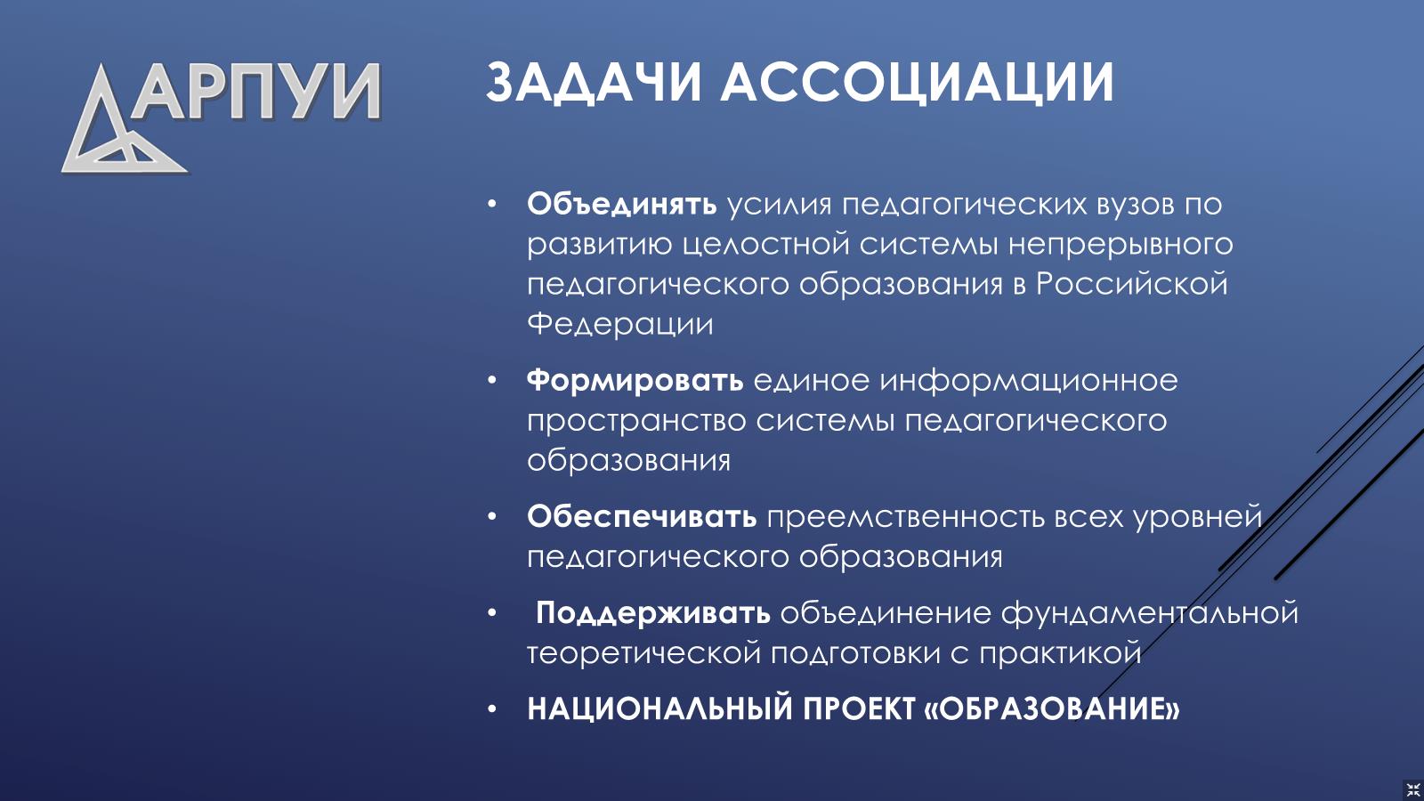 Ассоциация развития педагогических университетов и институтов (АРПУИ) учреждена 5 июня 2000 года Московским педагогическим государственным университетом и Московским государственным открытым педагогическим университетом (Московский государственный гуманитарный университет им. М.А. Шолохова). Томский государственный педагогический университет вошел в состав АРПУИ в 2020 году.