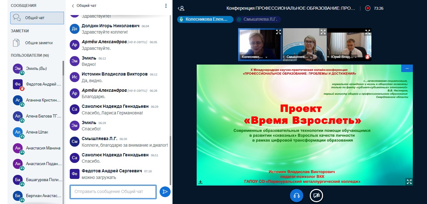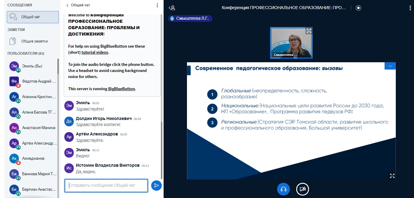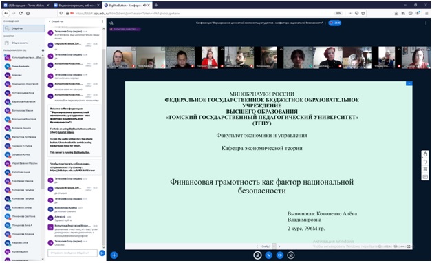 Конференция продолжалась более трех часов и была насыщена множеством вопросов, активным обсуждением вопросов. Завершая мероприятие, магистранты ТГПУ отметили важность нового формата выступлений и ценность приобретенного онлайн-опыта презентации своего материала. А специалисты ФЭУ ТГПУ выразили готовность к регулярному сотрудничеству и дальнейшей работе в рамках данной тематики.