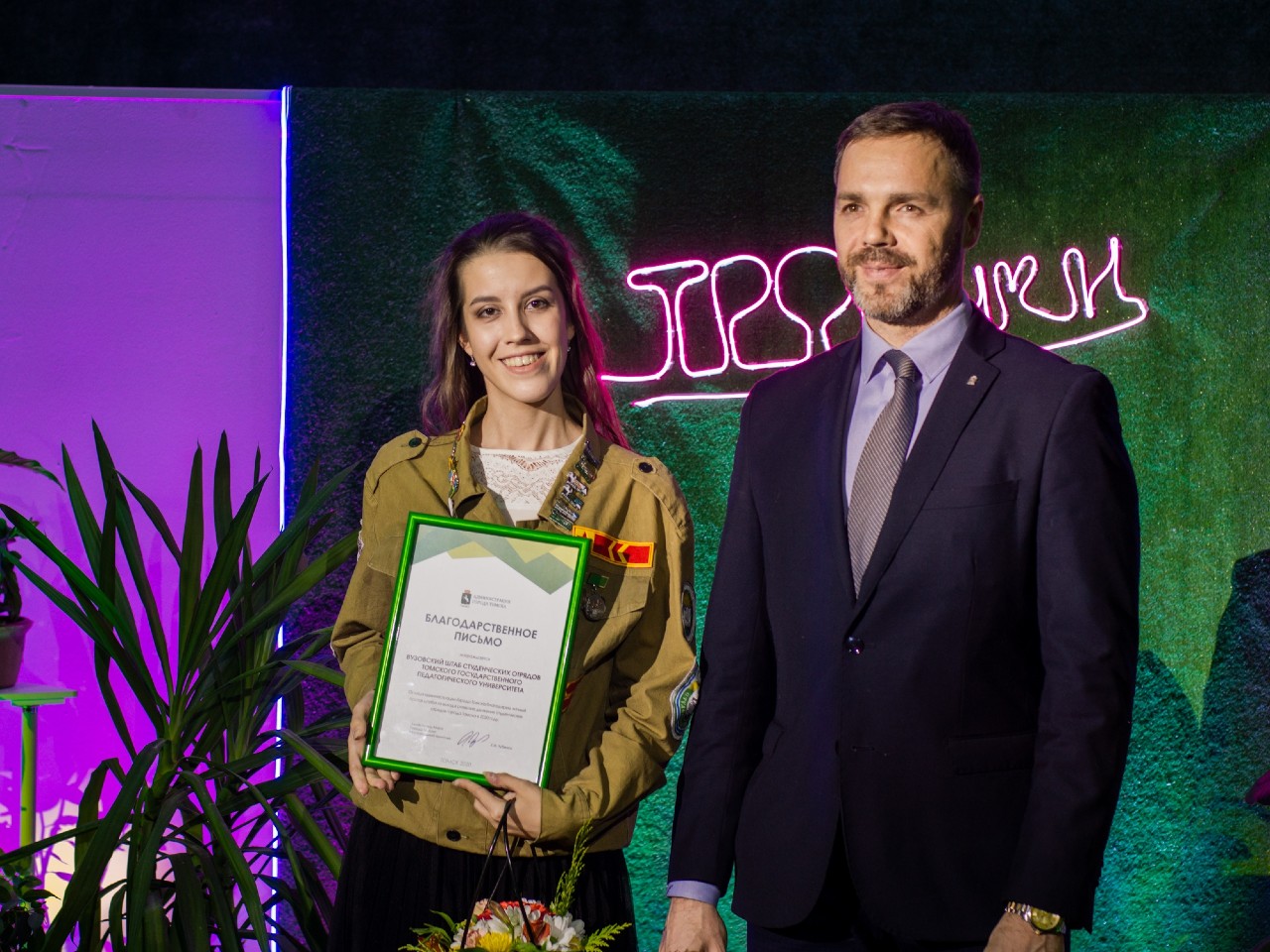 Благодарственным письмом за активную позицию бойцов Штаба ТГПУ награждена командир ВШСО Екатерина Зайцева. Департаментом по молодежной политике, физической культуре и спорту Томской области за работу в студенческих отрядах отмечены комиссар ВШСО ТГПУ, командир ЛСО «Клевер» Нагорнов Артем и комиссар СПО «Данко» ТГПУ Налимова Валерия. Благодарственные письма за достижение высоких показателей работы в сезоне 2020 вручены командиру СПО «Данко» ТГПУ Степановой Анастасии, комиссару ЛСО «Клевер» Рудченко Ольге, бойцу СПО «Данко» ТГПУ Ягофаровой Екатерине.