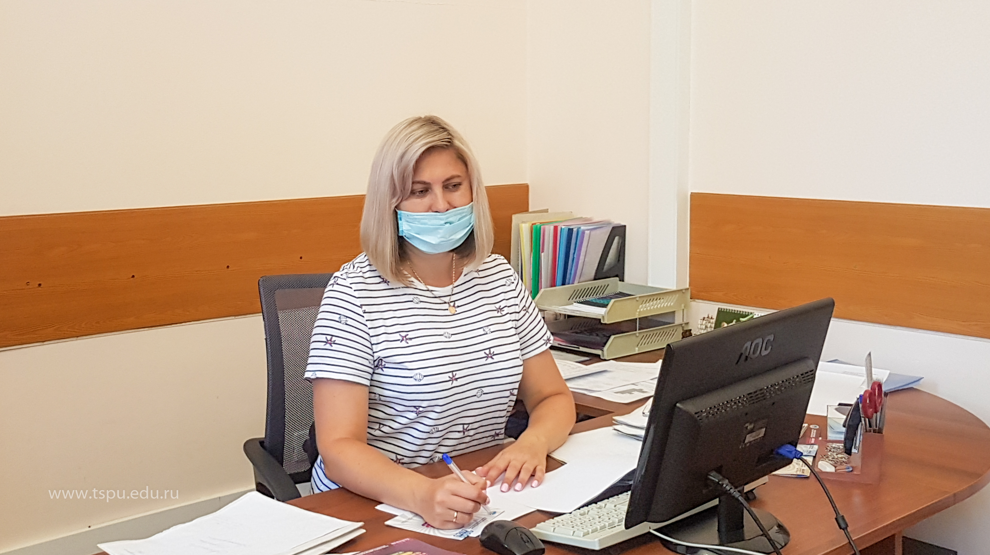 Соблюдая все нормы безопасного общения, на вопросы абитуриентов ответила специалист приемной комиссии, доцент ТГПУ Тамара Борисовна Черепанова.