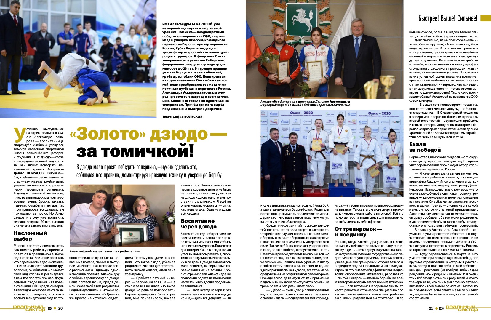 Успехи Александры на спортивной арене — настоящая гордость для вуза, города, страны! Ими интересуются не только спортивные деятели, но и томские журналисты. Так, представителям журнала «Реальный сектор» Александра рассказала свою историю успеха.