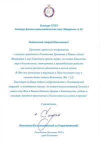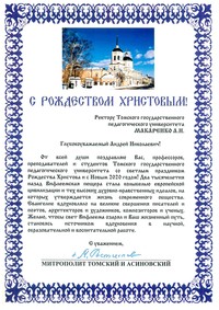 Митрополит Томский и Асиновский Ростислав поздравляет профессоров, преподавателей и студентов Томского государственного педагогического университета с великим праздником Рождества и с Новым 2020 годом!