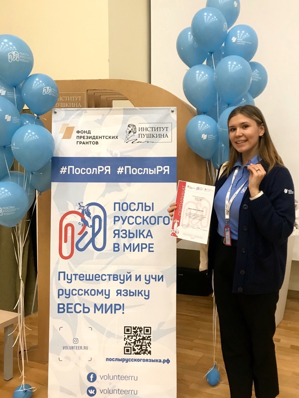 К международной волонтерской программе «Послы русского языка в мире», реализуемой Государственным институтом русского языка им. А.С. Пушкина (г. Москва) и поддерживаемой Фондом президентских грантов, присоединилась студентка историко-филологического факультета ТГПУ Валерия Таброско.