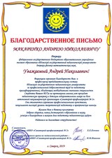 На имя ректора Томского государственного педагогического университета А.Н. Макаренко поступило благодарственное письмо от представителей администрации АНКО «Санаторий-профилакторий № 2» за профессиональный и добросовестный труд профессорско-преподавательского состава ТГПУ по подготовке квалифицированных, обладающих необходимыми знаниями специалистов.