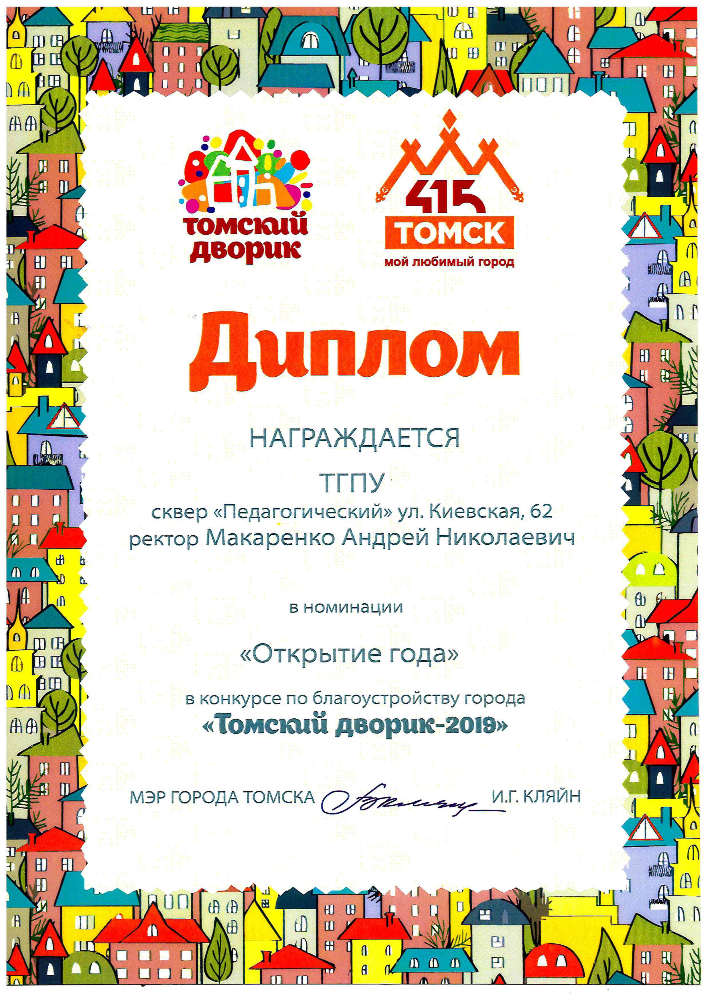 ТГПУ награжден дипломом конкурса "Томский дворик"