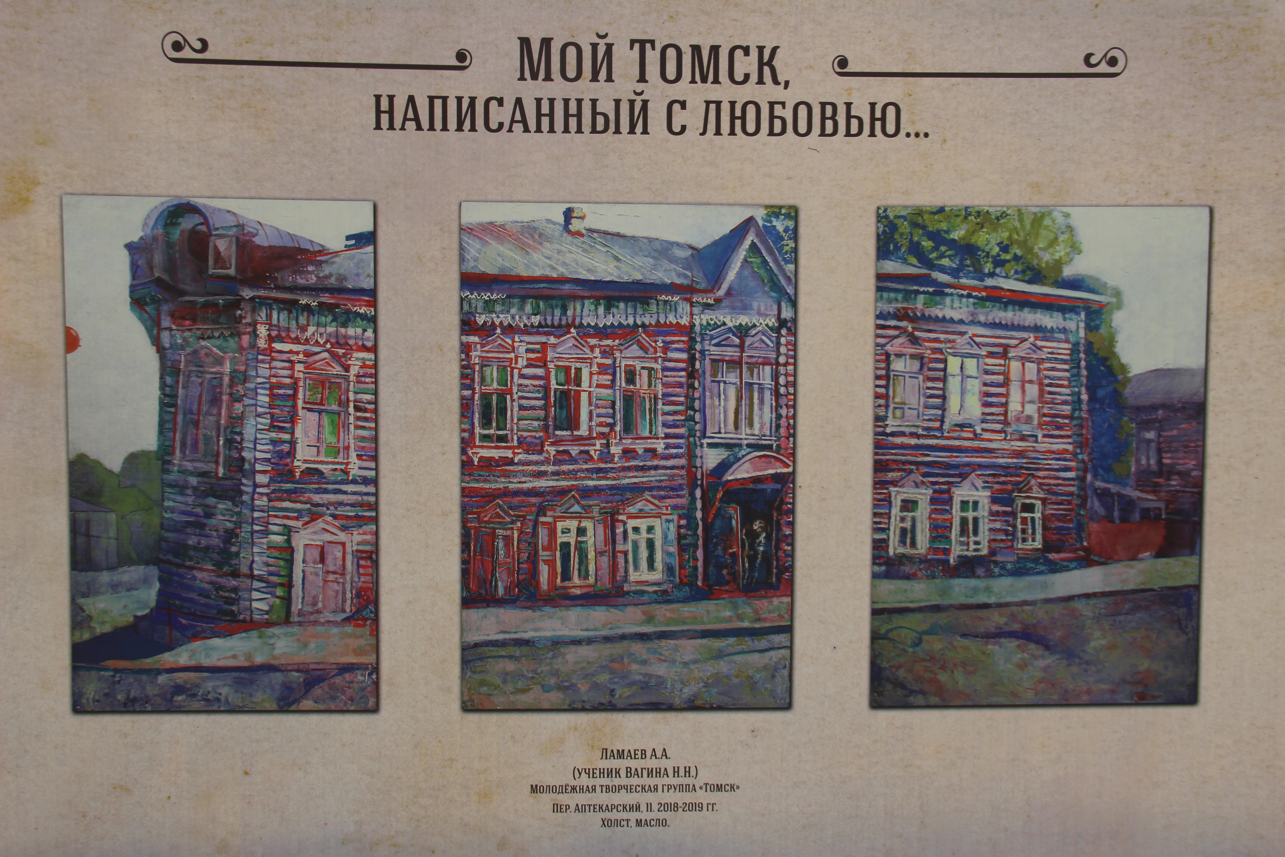 Со студентами, как с будущими коллегами, беседовала старший научный сотрудник Людмила Александровна Тимофеева. В ходе экскурсии было рассказано о приемах создания экспозиции, организации выставочного пространства, принципах общей концепции музейных выставок и многом другом. Интересной информацией для ребят также стал тот факт, что музей расположен в бывшем особняке золотопромышленника И.Д. Асташева (XIX в.). Здание имеет большую архитектурно-художественную ценность: в особняке сохранена характерная для XIX века планировка, рельефность стен, гарнитур, оставшийся со времен постройки памятника, концертный зал, где установлен орган.
