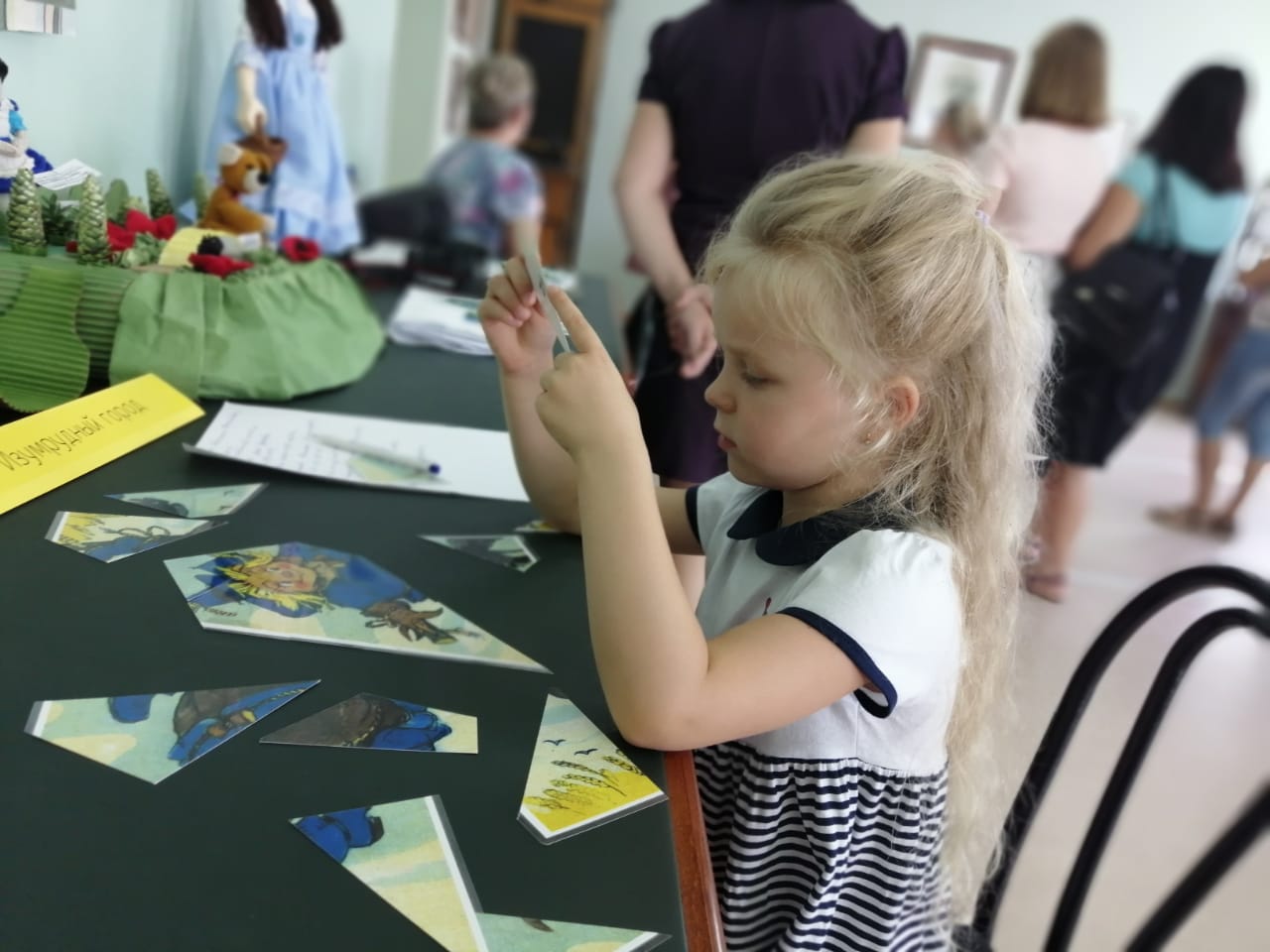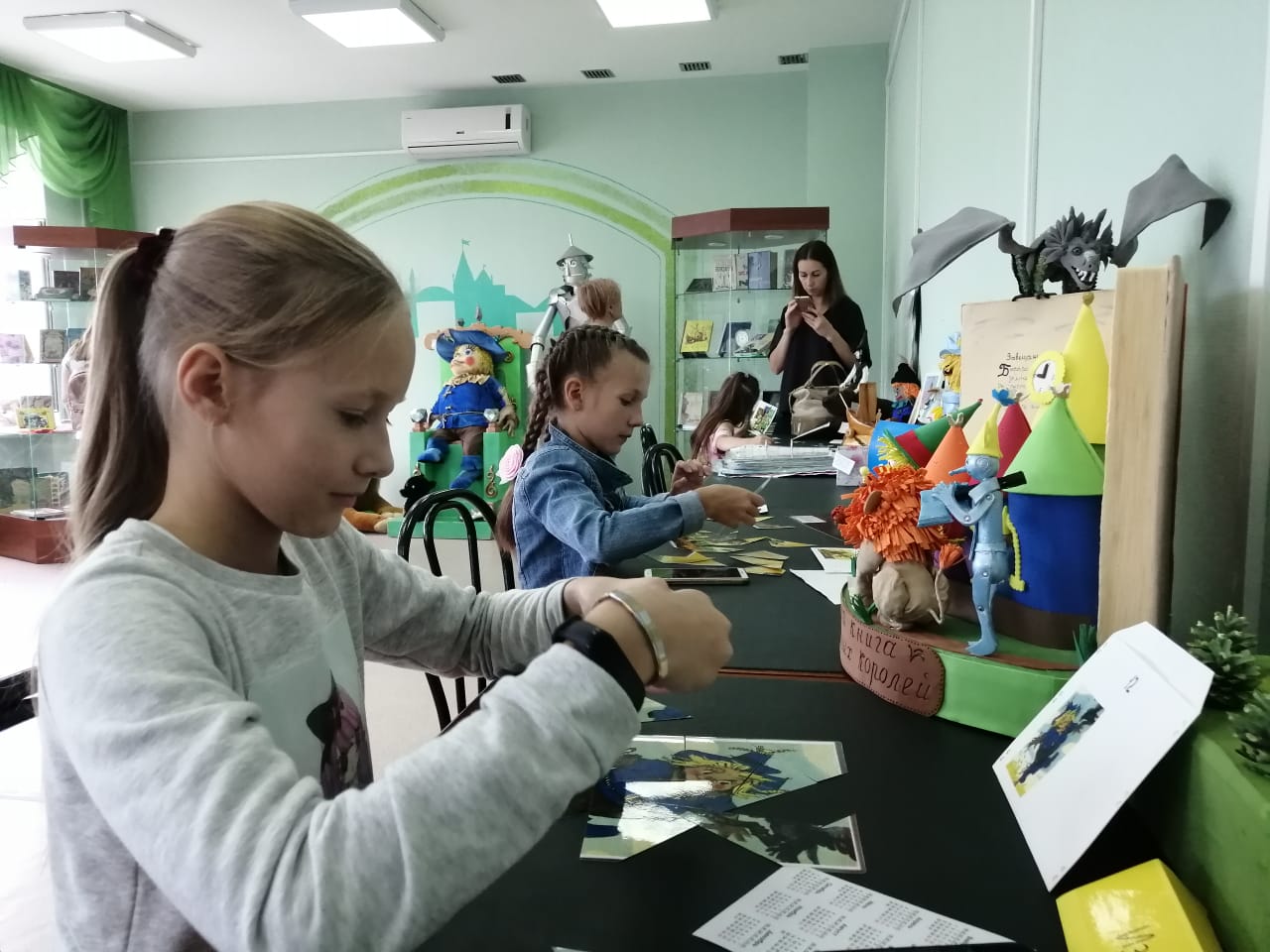 С большим интересом ребята отвечали на вопросы, раскладывали пазлы, увлеченно рассматривали работы участников творческих конкурсов авторской куклы и рисунка, которые традиционно проходят в музее. Заинтересовал юных посетителей и их родителей интеллектуальный конкурс знатоков сказок А.М. Волкова, старт которому будет дан уже в октябре 2019 года. За свою активность все гости сказочного музея получили приятные тематические сувениры.