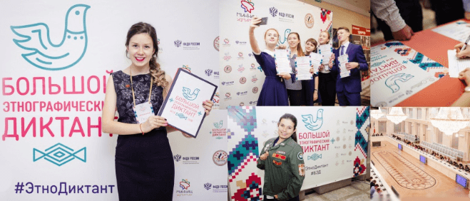 В России масштабная акция проводится уже третий год подряд. В 2017 году мероприятие получило статус международного — к участию присоединились страны СНГ: Киргизия, Таджикистан, Молдова и др. Проект осуществляется при поддержке Фонда президентских грантов. Организаторами «Большого этнографического диктанта» выступают Федеральное агентство по делам национальностей и министерство национальной политики Удмуртской Республики. Партнером Диктанта в этом году выступает Федеральное агентство по делам Содружества Независимых Государств, соотечественников, проживающих за рубежом, и по международному гуманитарному сотрудничеству (Россотрудничество).