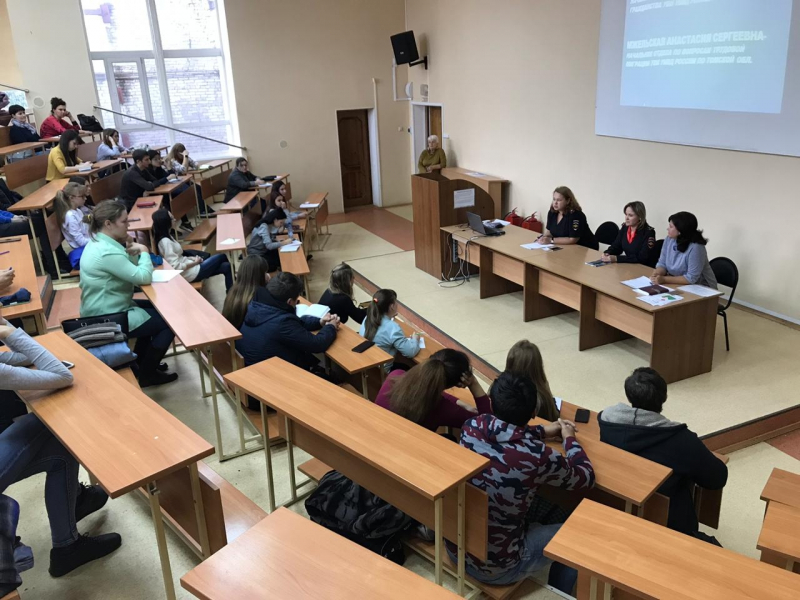Особое внимание слушателей гости ТГПУ, сотрудники органов внутренних дел, обратили на порядок постановки на миграционный учет, изменение места временного пребывания на территории субъекта и за его пределами, порядок и сроки получения разрешения на временное проживание, вида на жительство и получение гражданства Российской Федерации. Больше всего вопросов у студентов Томского Педагогического возникло к обсуждаемой теме «Трудовая деятельность студентов». От стражей порядка ребята получили развернутые ответы и максимум важной дополнительной информации.