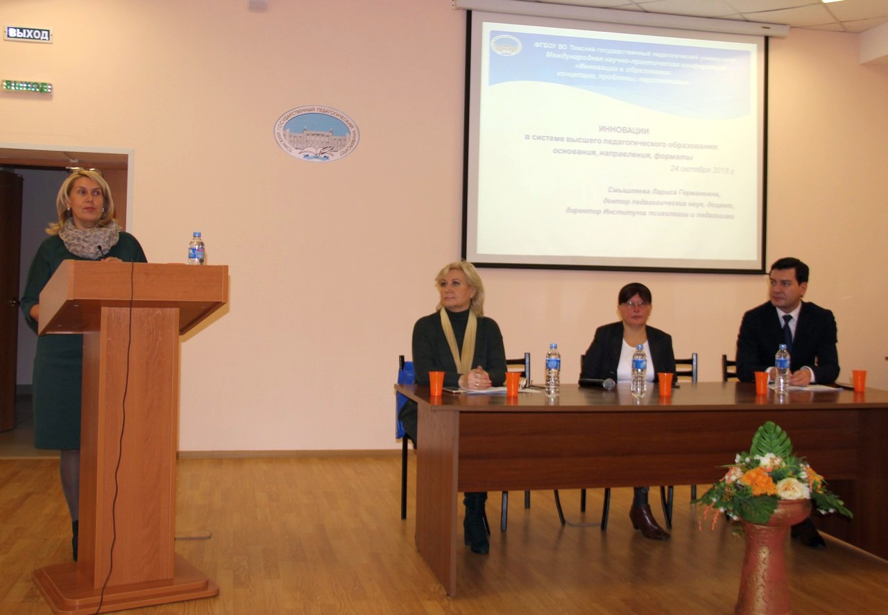 Сегодня в ТГПУ начала работу четвертая Международная научно-практическая конференция «Инновации в образовании: концепции, проблемы, перспективы». Открыла первое пленарное заседание декан факультета психолого-педагогического и специального образования Грицкевич Наталья Константиновна, а первый доклад сделала Смышляева Лариса Германовна, д-р пед. наук, доцент, директор Института психологии и педагогики ТГПУ «Инновации в системе высшего педагогического образования: основания, направления».
