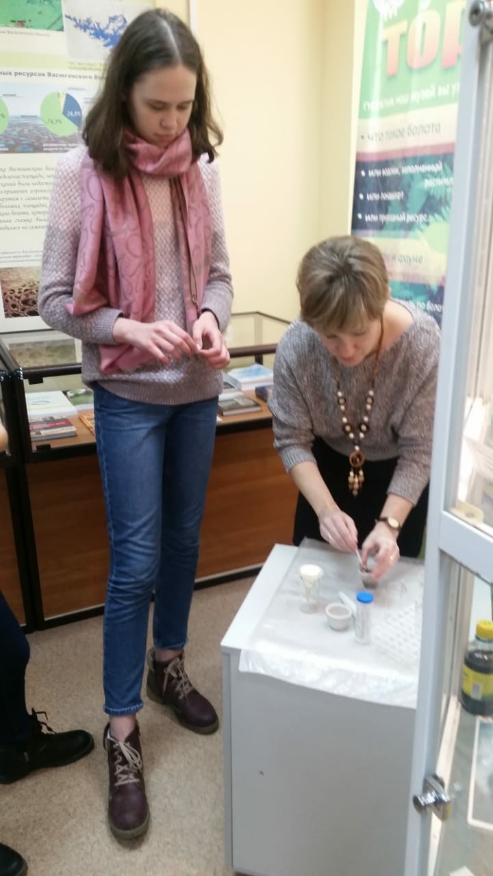 Биолого-химический факультет Томского государственного педагогического университета с гостевым визитом посетили учащиеся МАОУ гимназия №18 г. Томск. Сотрудниками и студентами факультета для ребят была организована экскурсия в Музей торфа ТГПУ и корпус БХФ. На встрече школьники узнали, что такое торф, почему его изучение важно в современном мире. Полученные теоретические знания ребята смогли применить на практике и под руководством доцента кафедры биологии растений и биохимии, к.б.н. Е.В. Порохиной определили pH верхового и низового торфов.