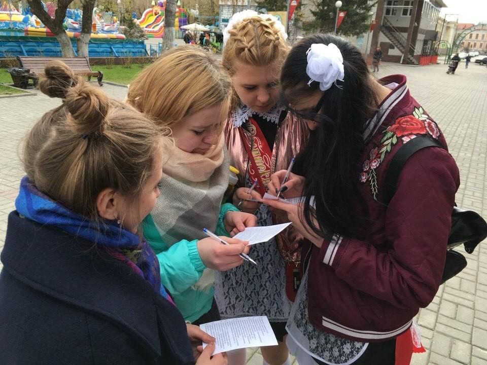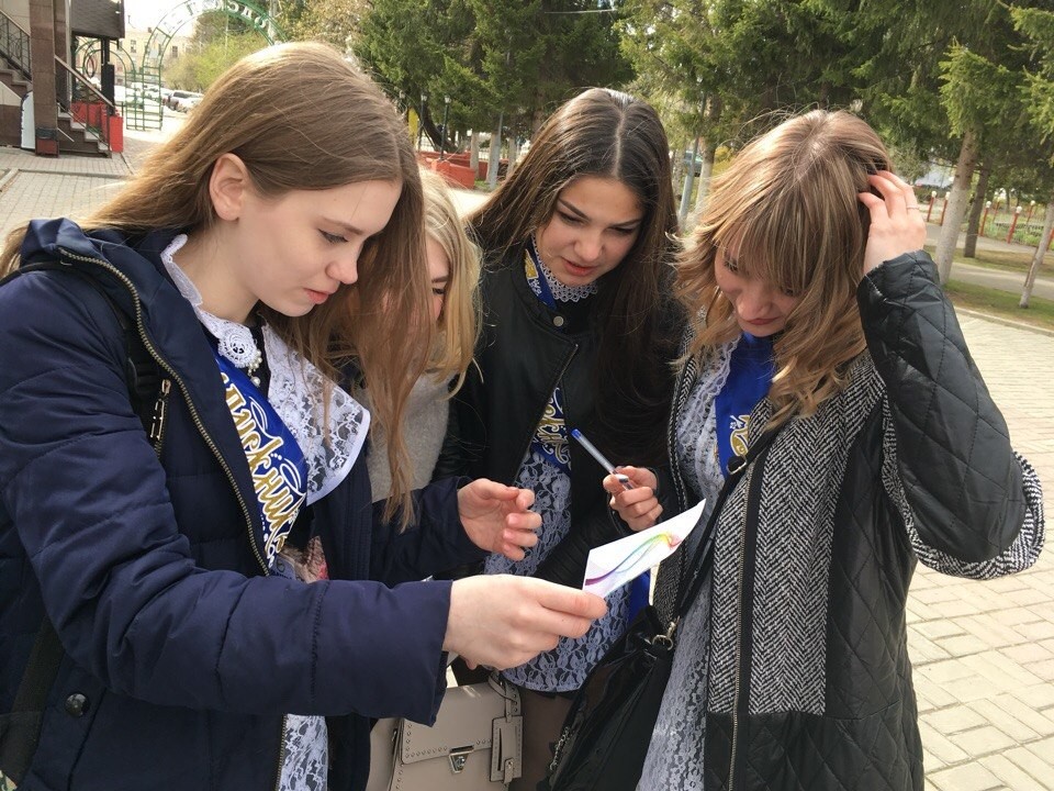 В этот день отличить старшеклассника от обычного горожанина не составило труда: белые фартучки девчонок и официальные костюмы мальчишек, лента «Выпускник — 2018» через плечо, колокольчик на груди, а также, конечно, неподдельный интерес к тем, кто через проспект идет навстречу в футболке «ТГПУ».