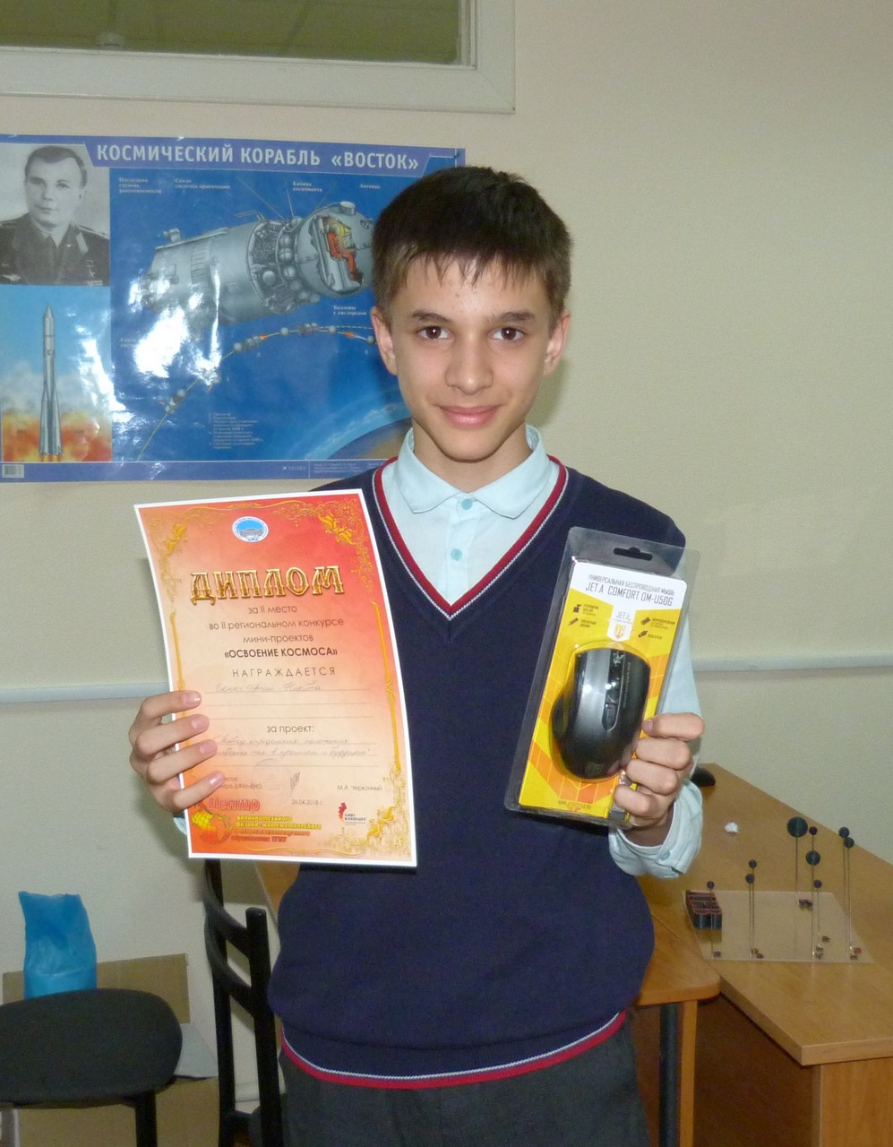 1 место — Скобелев Никита, проект «Астрономические наблюдения с помощью телескопа-рефрактора, изготовленного в школьной лаборатории», МКОУ «Тегульдетская СОШ».