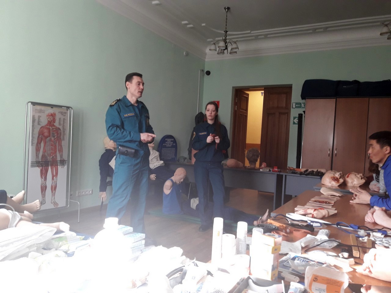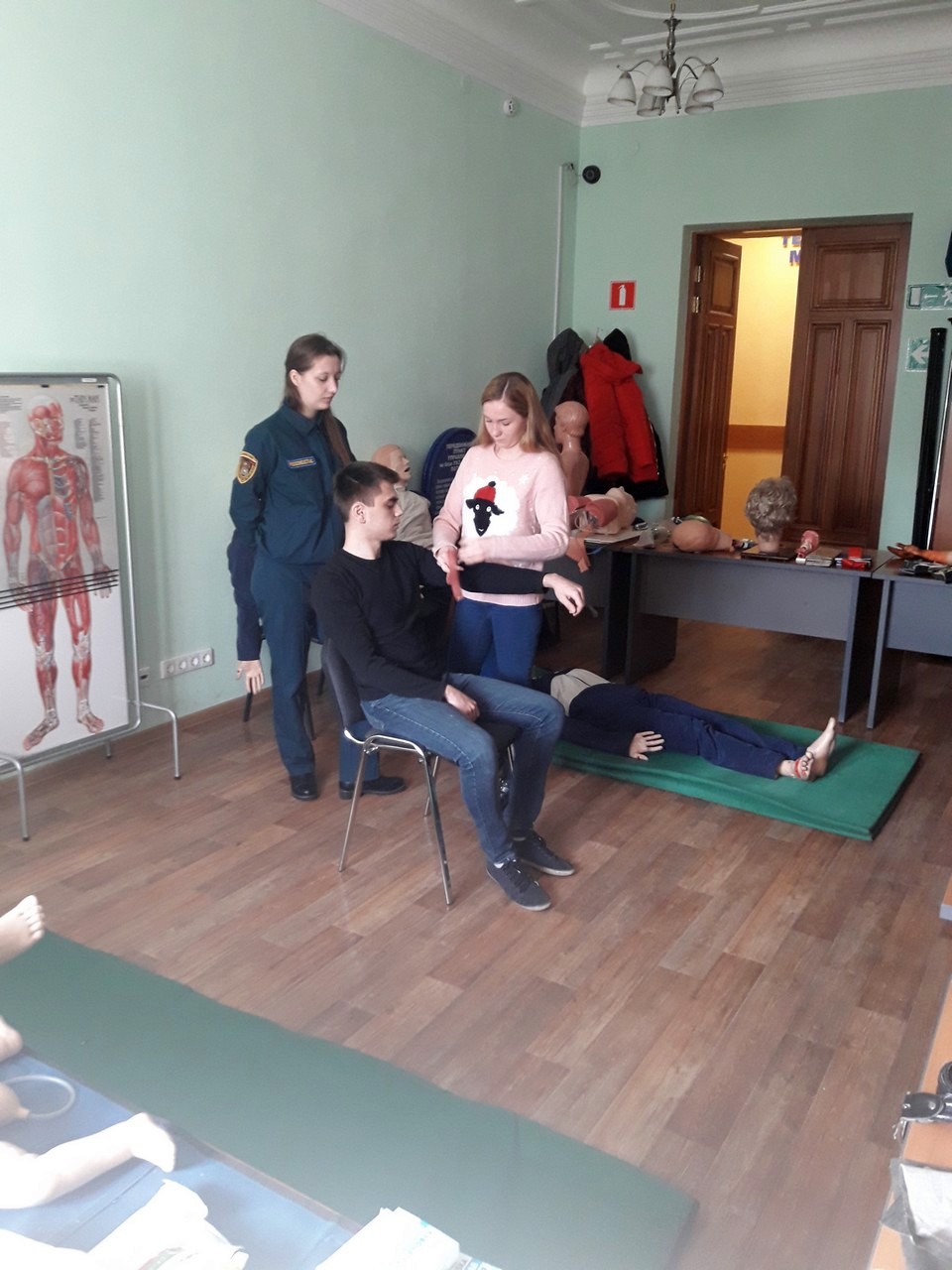 В рамках образовательной дисциплины «Медицина катастроф» студенты третьего курса факультета технологии и предпринимательства ТГПУ прошли обучение в Территориальном центре медицины катастроф Томской области. Занятие проводили сотрудник МЧС Алексей Набиев и волонтер студенческого корпуса Российского союза спасателей Томской области Зимницкая Кристина.