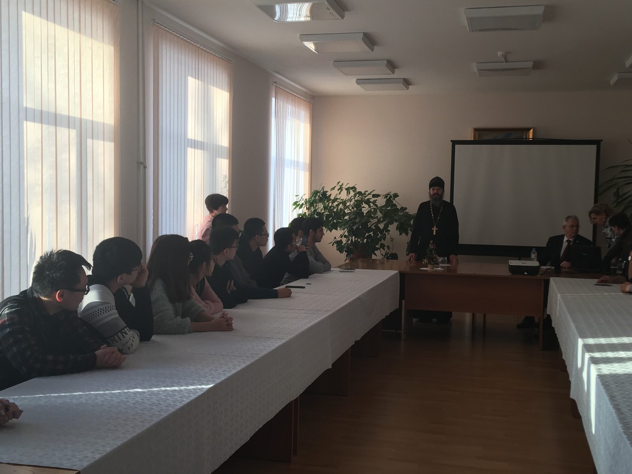 Сотрудниками Центра детско-юношеского туризма кафедры экономической теории факультета экономики и управления, Международного центра и Научной библиотеки ТГПУ было организовано совместное мероприятие, посвященное международным вопросам поиска точки взаимодействия и кросс-культурной коммуникации студентов, прибывших по обмену из Китая, с представителями Томской духовной семинарии (протоиерей Андрей Носков) и студентами ФЭУ ТГПУ.