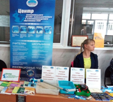 Сотрудники Центра ДФМиЕНО также приняли участие в выставке в МАОУ Лицей № 1 г. Томска «Школе – современные условия». На выставке были представлены авторские учебно-методические материалы, прототипы демонстрационного оборудования по физике, разработанные сотрудниками Центра ДФМиЕНО, рекламные материалы – анонсы предстоящих событий, мероприятий на новый учебный год.