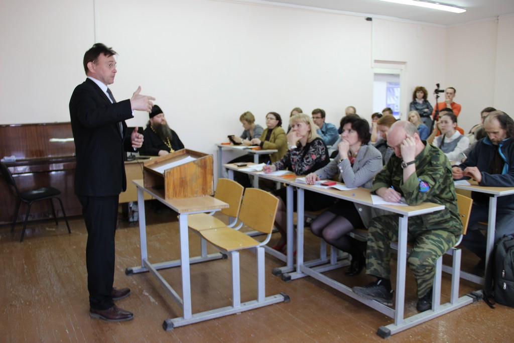 Интерактивную беседу на тему «Русская Православная Церковь между февралем и октябрем 1917 г.» со слушателя провел церковный историк и публицист, доктор богословия Санкт-Петербургской духовной академии отец Георгий Митрофанов: «Я остановлюсь на странице нашей истории, малоизвестной даже подчас специалистам, потому как они изучают строй Российского государства, а не церкви. И страница эта связана с тем, как в короткий промежуток между февралем и октябрем 1917 года Русская православная церковь в плодотворном сотрудничестве с Временным правительством смогла подготовить и осуществить созыв собора. И это несмотря на то, что Временное правительство в значительной степени состояло из тех людей, которые в основу отношений церкви и государства полагали не свою личную веру, а право, закон и принципы свободной демократии. И это самый благоприятный вариант, дающий возможность многим категориям развиваться свободно. И только церковь в этих условиях смогла воспользоваться данным шансом плодотворно и созидательно».