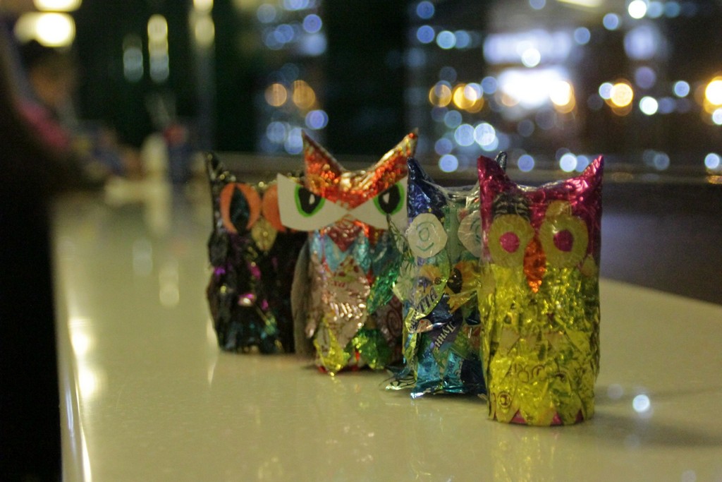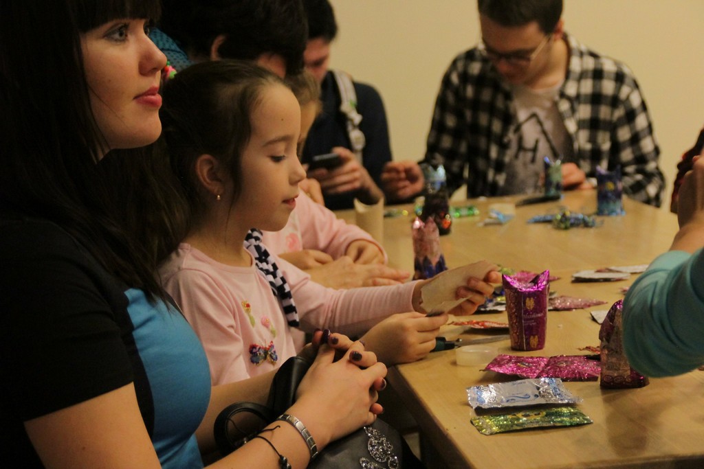 На встрече из бросовых материалов, которыми послужили конфетные обертки и картонная туба, участники мастер-класса изготовили елочную игрушку — сову. Каждая поделка отражала характер своего создателя, но главное, стала напоминанием о необходимости ответственного отношения не только к бросовым вещам, но и к окружающей природе.