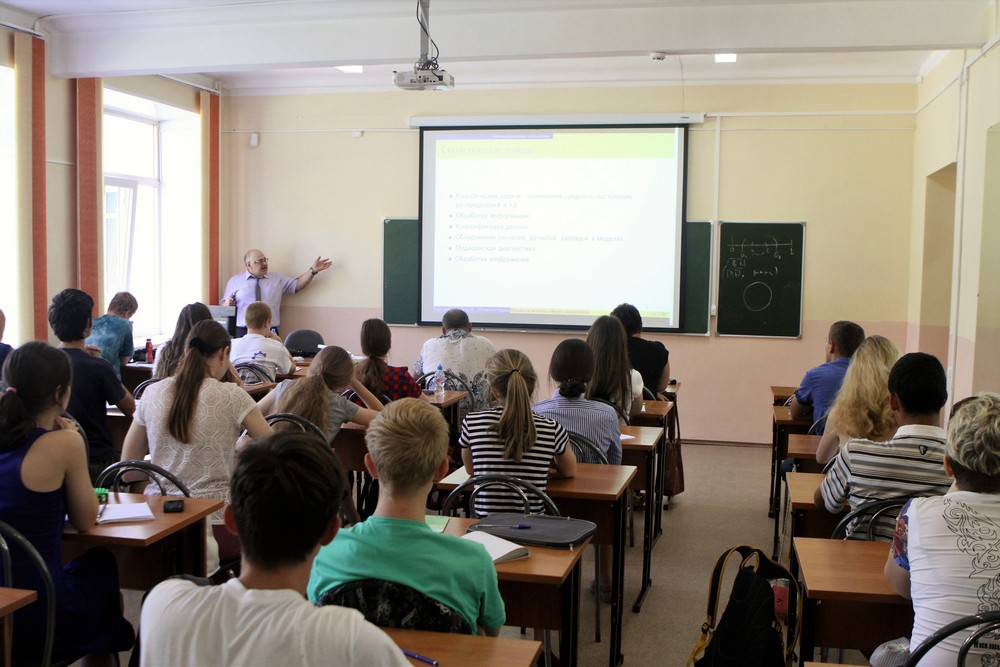 Томич Сергей Маркович часто приезжает в родной город с лекционными занятиями и семинарами. Исключением не стал и данный визит: профессор провел открытую лекцию,в рамках которой встретился с учениками смены, педагогами, обучающимися в математической магистратуре ТГПУ и затронул вопросы математических приложений теории вероятностей статистики для экономики, логистики, обработки видео и фото-информации, теории игр и т.п. Рассказал о задачах, которые ставит себе исследователь-математик, сравнил образовательные системы России и Франции, рассказал о программах совместного обучения университетов Руана и Томска.