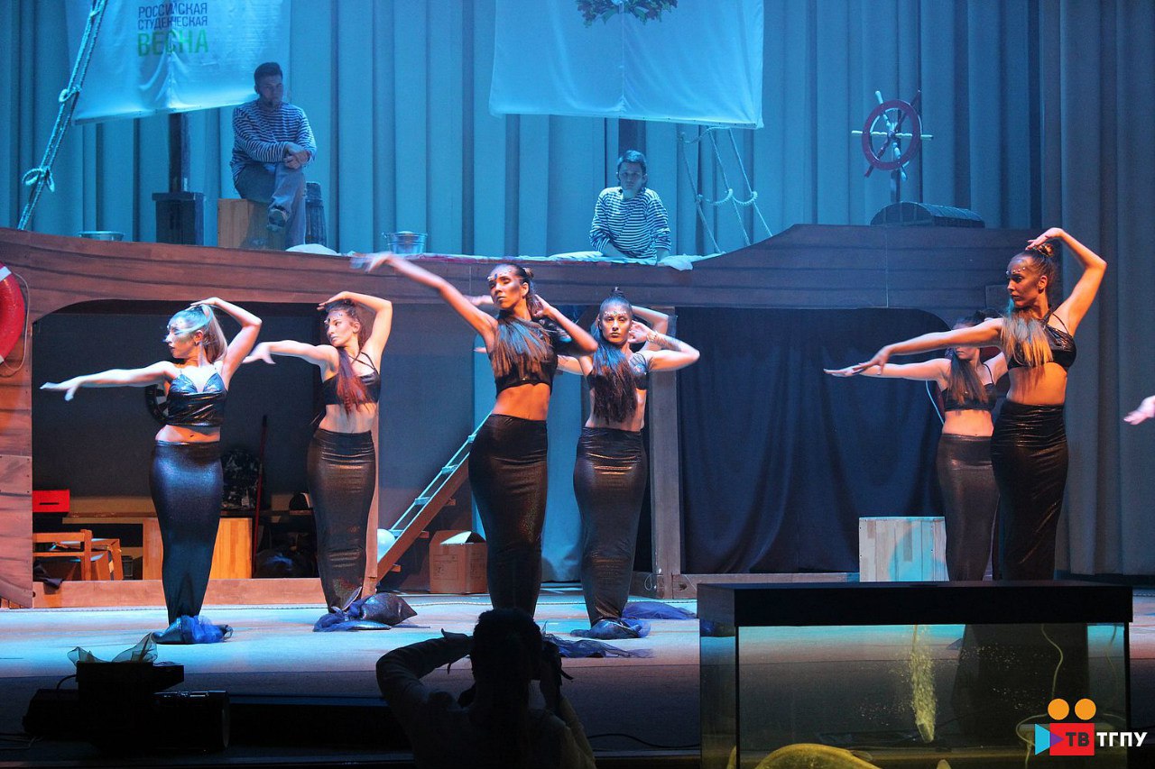 Как рассказал журналистам РИА Томск проректор по молодежной политике и воспитательной работе ТГПУ Д.Б. Насонов, победителями номинации «Конкурсная программа» стали сразу два вуза, однако членами жюри фестиваля рекомендовано использовать для выступления в Казани программу ТГПУ, сюжетом которой стало морское путешествие на корабле. Ребята едут с археологических раскопок, им надо попасть в Томск на конференцию и рассказать об артефактах, которые они нашли.