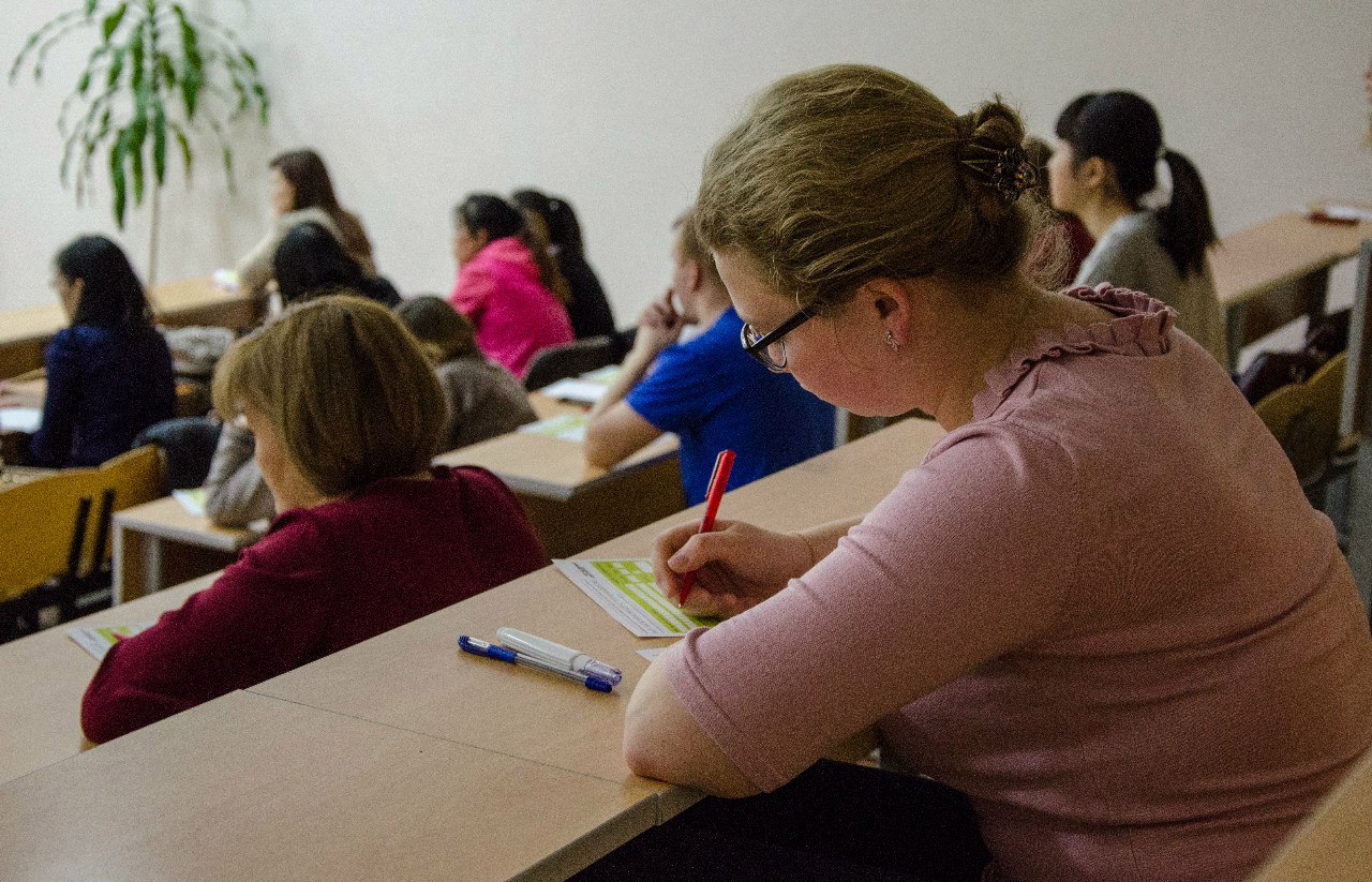 Более 60 человек в минувшие выходные написали тотальный диктант в стенах Томского государственного педагогического университета. Образовательная акция в этом году прошла на 13 городских площадках. Горожане могли выбрать любую удобную для них и зарегистрироваться для участия. Прежде чем приступить к написанию диктанта, экзаменуемые встретились с автором текста российским детским писателем Андреем Усачевым. Текст диктанта в Томском Педагогическом для всех участников акции прочел проректор по молодежной политике и воспитательной работе вуза Дмитрий Борисович Насонов.