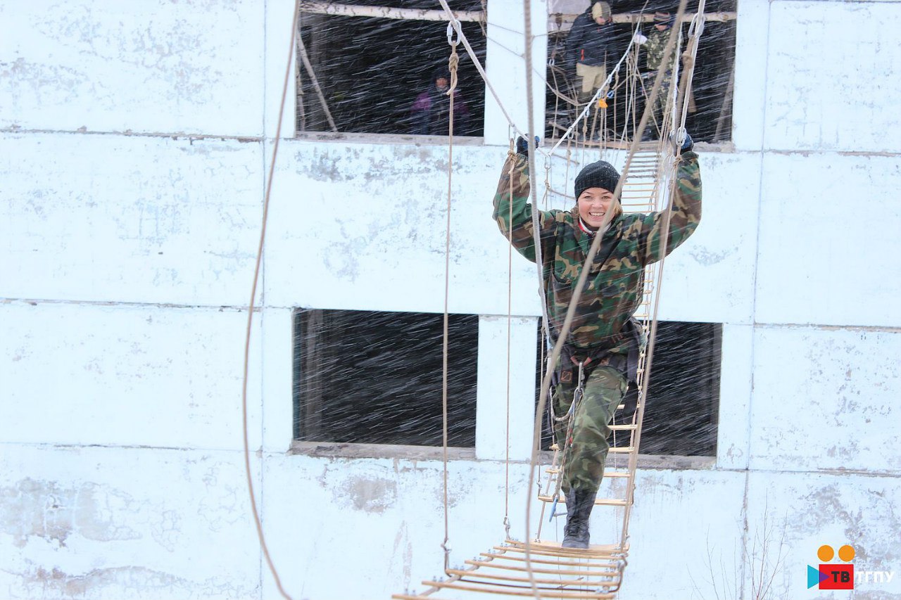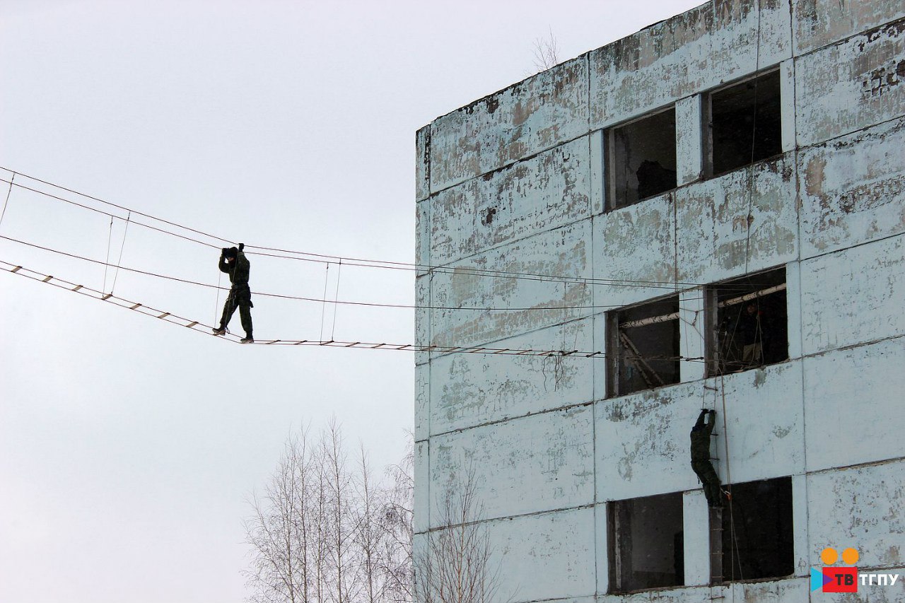 Настоящим испытанием стало для участников «Штурма» прохождение туристской тропы. По веревочной лестнице студентам предстояло взобраться на третий этаж здания и пересечь поле, пройдя по подвесному мосту. Однако, следуя девизу истинного бойца: «Побороть страх и одержать победу!», штурмовики ТГПУ ринулись в бой и смело преодолели поставленные перед ними препятствия.