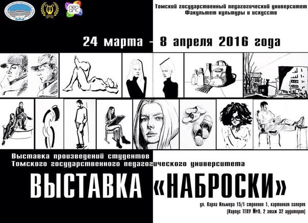 Выставка студенческих работ «Наброски» открыла свои двери для всех желающих насладиться графическими произведениями студентов Томского государственного педагогического университета. В работе экспозиции приняли участие студенты разных факультетов Томского Педагогического, представив общественности свои наброски. На выставку принимались зарисовки портретов, животных и предметов, выполненные на различном материале. Как отмечают организаторы мероприятия — студенты и сотрудники факультета культуры и искусств ТГПУ, главная цель выставки — развитие чувства красоты и гармонии средствами изобразительного искусства. Экспозиция будет открыта для всех желающих с 24 марта по 8 апреля 2016 года в картинной галерее корпуса № 9 ТГПУ (ул. Карла Ильмера, 15/1, стр. 1).