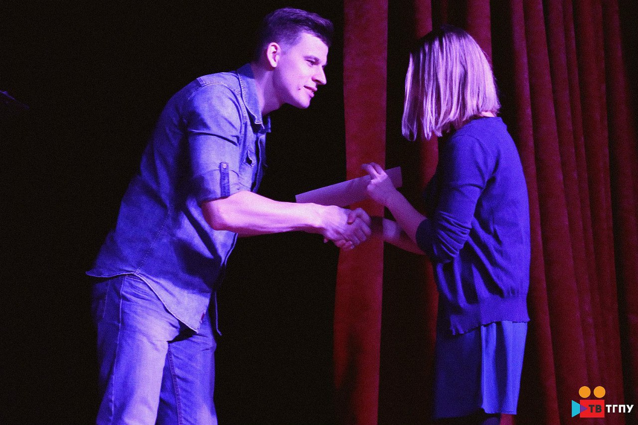 В преддверии новогодних праздников студенческие лидеры Томского государственного педагогического университета подвели итоги деятельности уходящего года. На праздничном концерте благодарственными письмами были отмечены активисты Профсоюзной организации студентов, Студенческого совета, Студенческого клуба ТГПУ, энтузиасты Студенческой студии "ТВ ТГПУ", Студенческого педагогического отряда "Данко", волонтеры отряда "Точка зрения" ТГПУ. За активную поддержку и помощь в организации концертных мероприятий вуза Проректор по воспитательной работе ТГПУ Д.Б. Насонов выразил признательность Валентине Ивановне Петриевой, профессору кафедры хореографии ТГПУ, и Вершининой Марине, выпускнице факультета культуры и искусств ТГПУ.