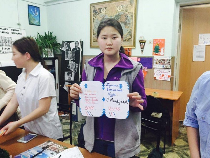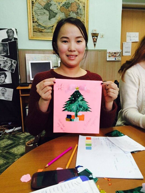 Итоговой работой монгольских учащихся 2015 года в цикле занятий по социально-психологическому развитию в международном Евро-азиатском адаптационно-образовательном центре (ЕврАзОЦ) Томского государственного педагогического университета стала творческая разработка новогодних открыток, посвященных поздравлению преподавателей, студентов, друзей с Новым 2016 годом на русском языке. В результате, получились неповторимые по своему дизайну и творческой идее новогодние подарки от монголов – открытки, выполненные в духе российских традиций.