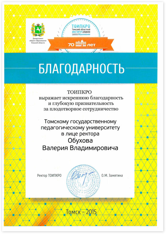 Томский областной институт повышения квалификации работников образования выражает благодарность и глубокую признательность Томскому государственному педагогическому университету за плодотворное сотрудничество.
