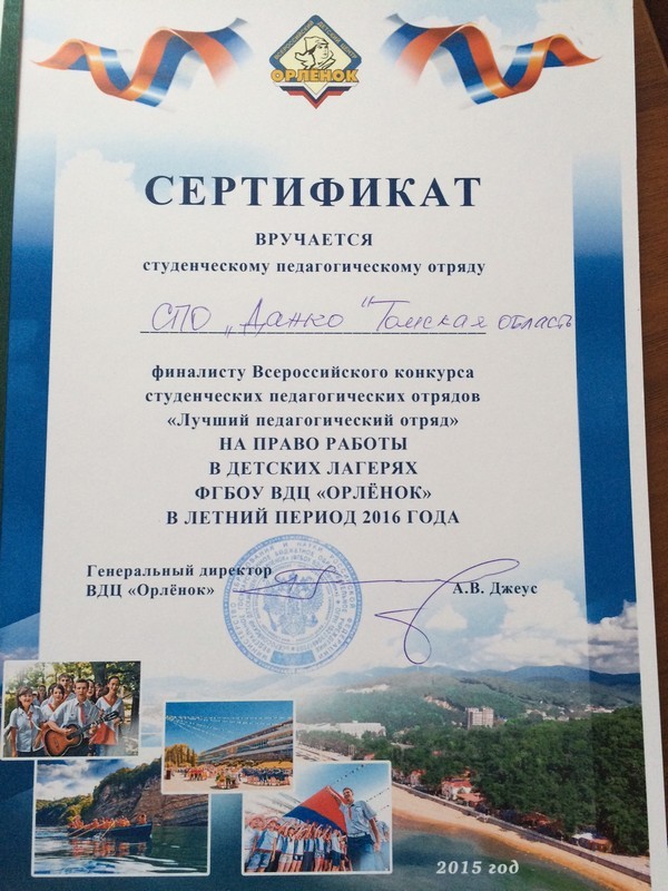 Всероссийский слет студенческих отрядов прошел в Челябинске 5-7 ноября 2015 г. Более двух тысяч студентов встретились на одной арене, чтобы подвести итоги 56-го летнего трудового семестра. Педагогические отряды всей России боролись за звание лучшего отряда страны. В числе конкурсантов был и Студенческий педагогический отряд Томского государственного педагогического университета "Данко".