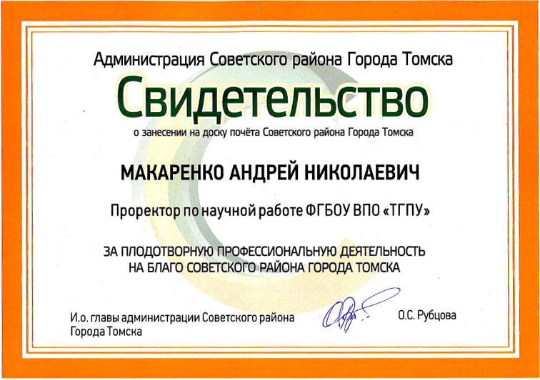 Организационный комитет Всероссийского фестиваля "Российская студенческая весна" выразил благодарность Томскому государственному педагогическому университету в лице ректора Валерия Владимировича Обухова за неоценимый вклад в развитие студенческого самодеятельного творчества и поддержку молодежных социальных инициатив.