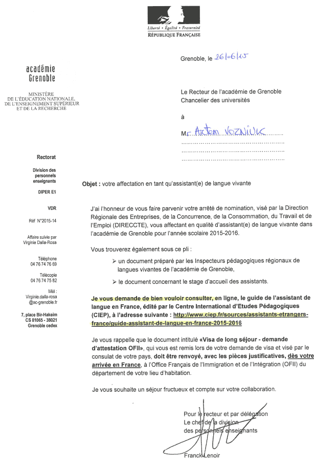 Престижный грант на прохождение программы «Assistants des langues vivantes» в Гренобле