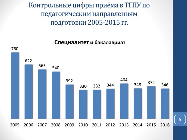 Нужно срочно решить проблему увеличения контрольных цифр приёма по педагогическим направлениям подготовки для ТГПУ. Это совершенно необходимое условие, но, к сожалению, недостаточное.