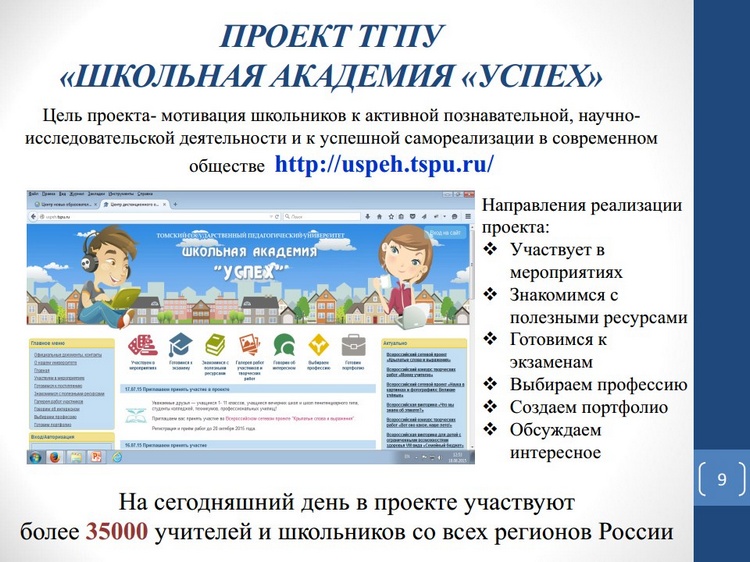 Интерес к обучению в педклассах можно усилить возможностью включения в целевой набор ТГПУ и подготовкой к госэкзаменам через проекты «Школьная академия» и ЕГЭ-70.