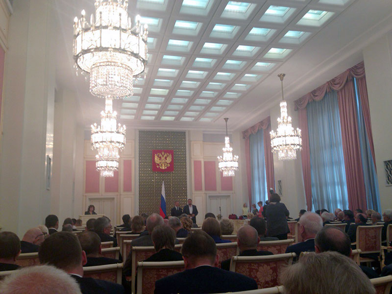 «Сегодня вы получили дипломы лауреатов премии Правительства в области науки и техники за 2014 год. Премии, естественно, вручаются лучшим. В данном случае речь идёт о таких решениях, о таких разработках, которые дают импульс развитию науки и техники, имеют научное и практическое значение и, самое главное, востребованы нашей экономикой. Поэтому, ещё раз сердечно вас поздравляю с этой высокой государственной оценкой.»