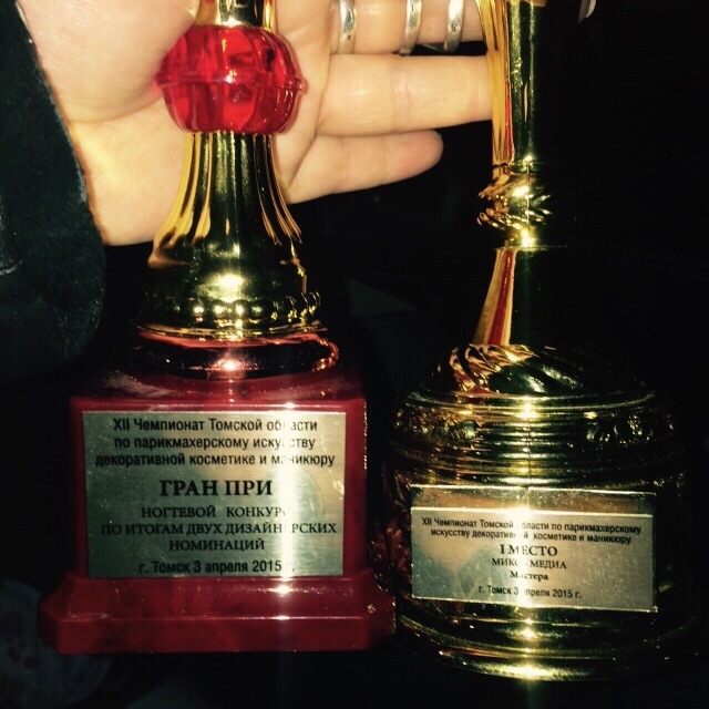 По итогам прошедшего Чемпионата "Гран При" по общему зачёту в дизайне получила преподаватель дисциплины "Мода и стили в нэйл-сервисе" Факультета экономики и управления ТГПУ, Провоторова Татьяна Владимировна. Она же заняла 1 место в номинации "Микс Медиа", 2 место в номинации "Китайская роспись" и 3 место в номинации "Акриловое моделирование".