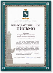 15 декабря 2014 года в Доме Ученых прошла встреча профессоров с Губернатором Томской области. На торжественном мероприятии Сергей Анатольевич Жвачкин наградил победителей конкурса Лауреатов премии Томской области в сфере образования, науки, здравоохранения и культуры 2014 года. Научный коллектив ТГПУ под руководством профессора Минича Александра Сергеевича и профессор Гельфман Эмануила Григорьевна получили премии от Губернатора Томской области. |