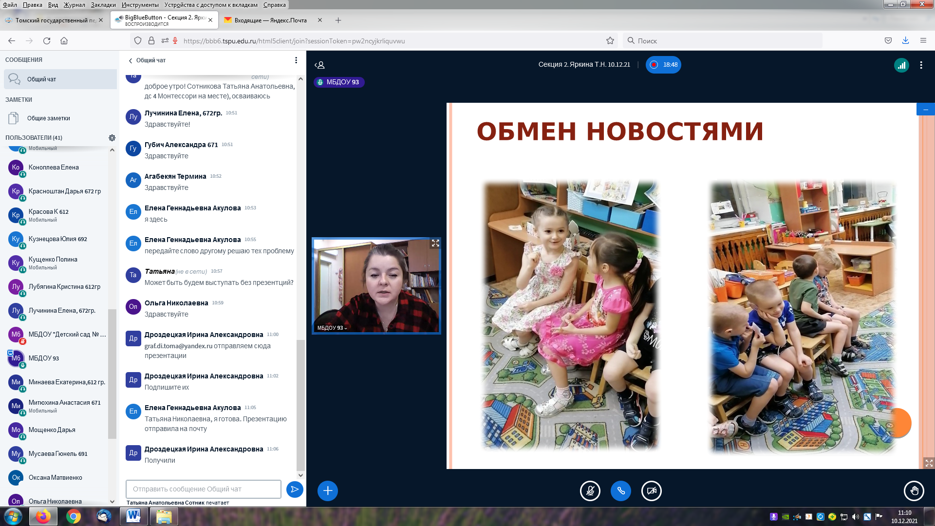 В работе второй секции «Специфика организации предметно-пространственной развивающей среды, способствующей поддержке и развитию детской инициативы», модератором которой выступила Яркина Татьяна Николаевна, к.пед.н., заведующий кафедрой дошкольного образования, приняли участие более 40 человек – представители дошкольных образовательных организаций г. Томска, Томского района, Томской области и г. Бийска.