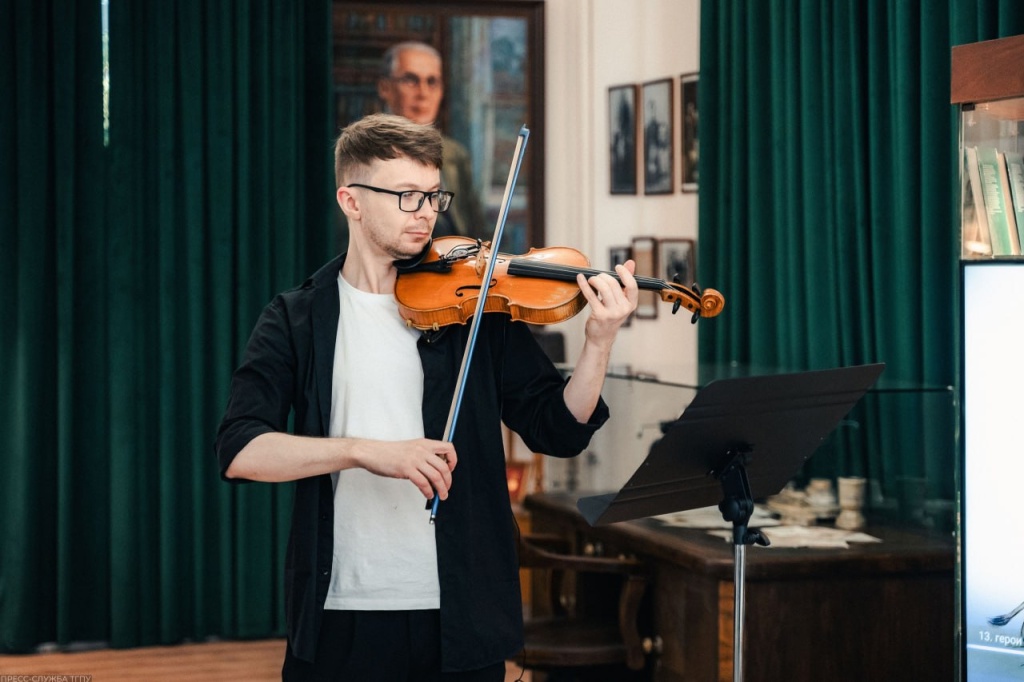 Посетителей ждет рассказ о скрипке А.М. Волкова, которую будущему писателю выдали в годы обучения в Томском учительском институте. Скрипка была отреставрирована, и во время экскурсии можно будет услышать ее звучание.
